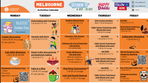 ILSCでは、気軽にアクティビティに参加することができます。アクティビティコーディネーターがアクティビティカレンダーを毎月作成しており、興味のあるイベントに参加しながら英語を使う時間を増やすことができます。事前予約は不要です!
