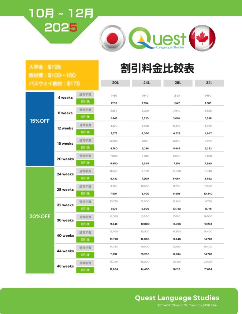 現在、同校では下記のキャンペーンを実施しております。留学予定の方はお見逃しなく!