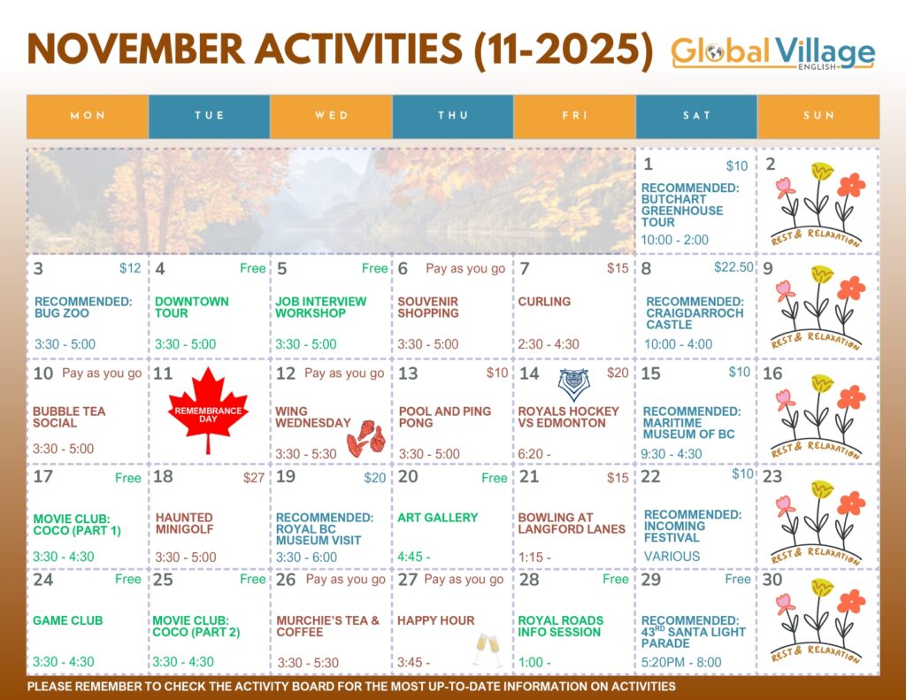 グローバルビレッジイングリッシュセンタービクトリア校のアクティビティ