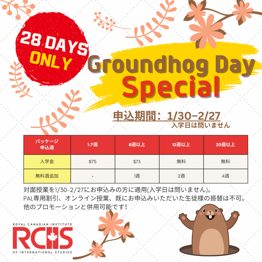 カナダ トロントでスピーキング強化の実践的授業でワーホリの仕事探しに前に大変役立つ授業を展開してると評判のRCIIS(アールシーアイアイエス)同校から授業料割引+無料週数プラスというダブルキャンペーンが出ました!