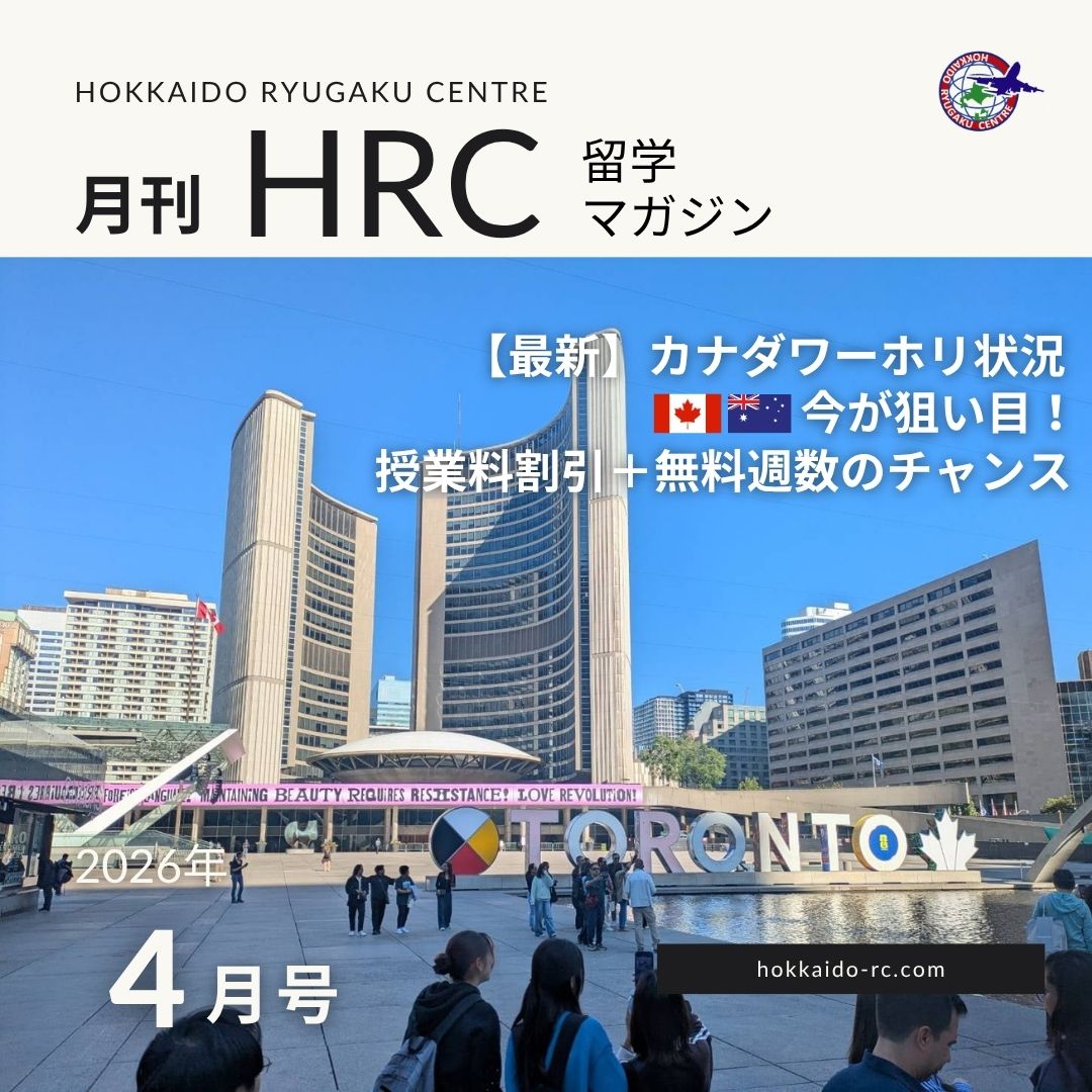 なお北海道留学センターではワーホリで学校へ行かれる方で当センターで申し込みされる方に関しては無料でサポートさせていただいております。