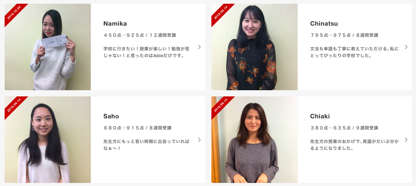 次々と高得点者を輩出するAbleではどのように授業が進んでいるのか、確実にスコアを上げるための秘訣は何かなど、気になるポイントを徹底解剖しました。