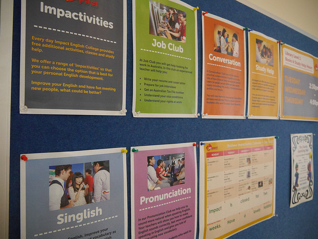 クラスでの授業以外に自由参加可能な「impactives」が人気でもあります。メルボルン校同様にブリスベン校でも毎日下記写真のように様々行われてます
