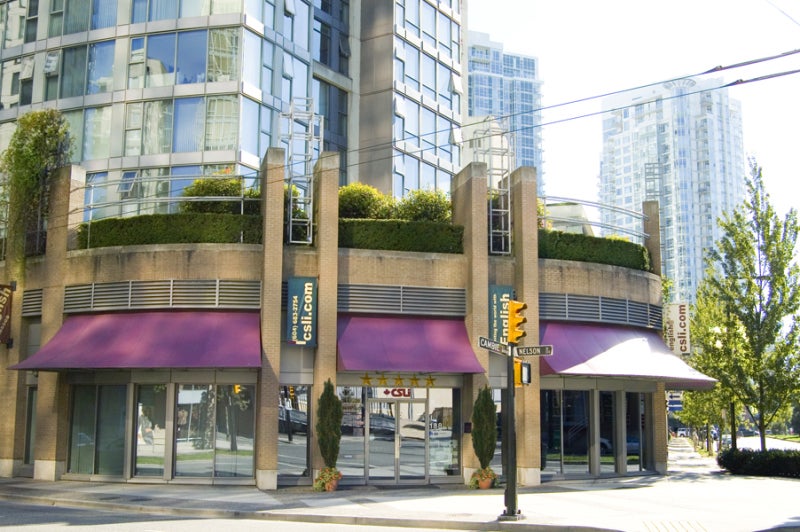 バンクーバーでおしゃれなお店やレストラン、また高層マンションが立ち並ぶ、イエールタウンにキャンパスがあります。