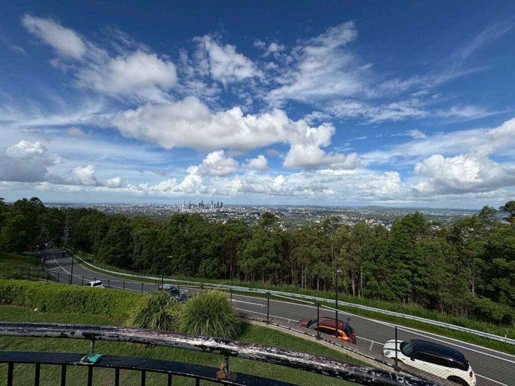 実際にバスでマウント・クーサへ行き、ブリスベンの街並みを一望しました。夕日が綺麗なスポットとしても有名ですが、今回は日中に訪れ、それでも十分に美しい景色を楽しむことができました。