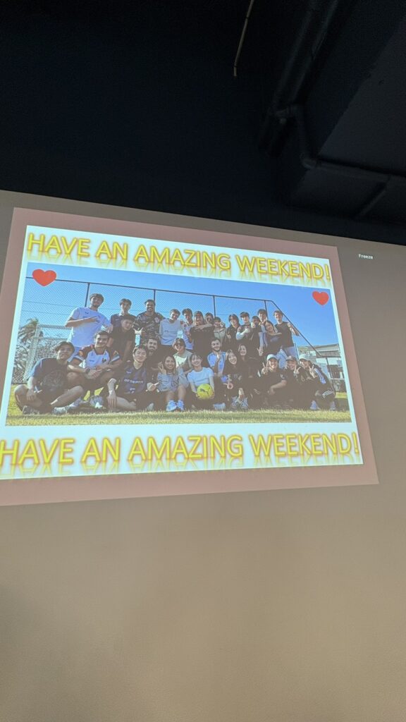 学校のアクティビティにも参加しました。参加したのは、10月に開催される「Langports Games(ブリスベン校vsゴールドコースト校対抗のイベント)」に向けたチアリーディングの練習です。もともと自分から積極的に参加しようと思っていたわけではなく、友人に「一緒にやってみよう」と誘われたのがきっかけで参加しました。最初は「オープン参加」のような雰囲気で、「興味がある人は来てみて」という感じだったので、軽い気持ちで教室に行ってみました